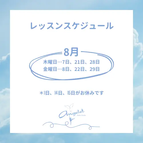 2025年8月のレッスンスケジュールは