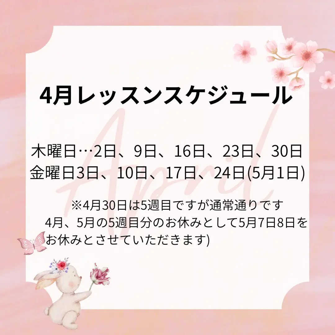 4月レッスンスケジュールは